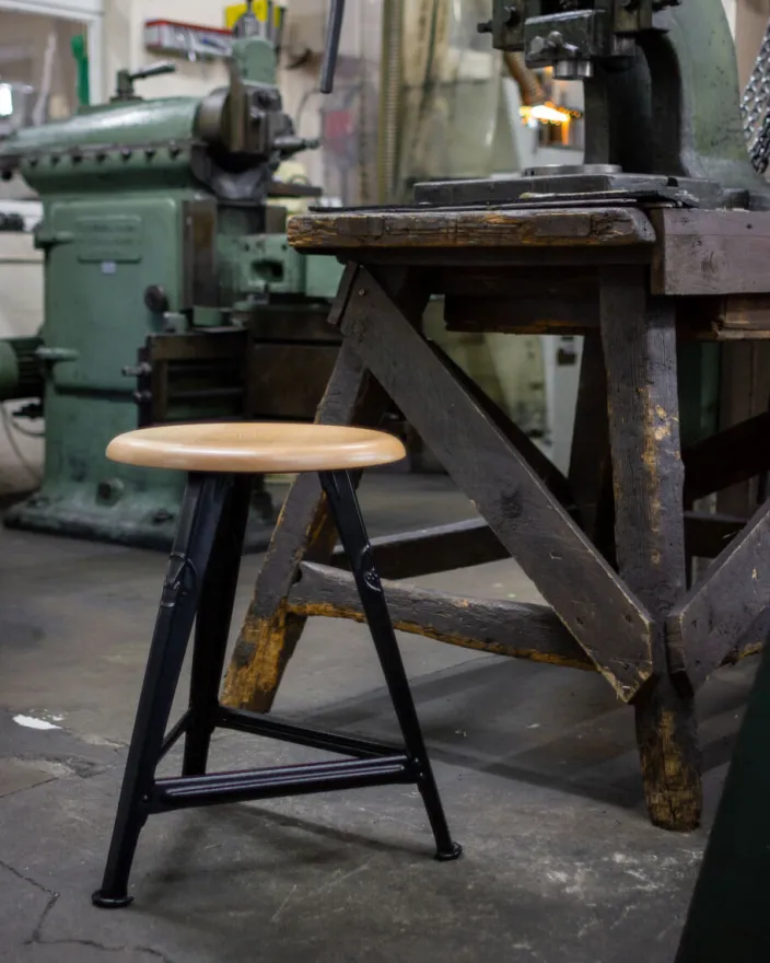 Nach über 70 Jahren kommt dieser Designklassiker wieder auf den Markt. Zeitlos gestaltet ist der Archetyp des Werkstatthockers auch heutzutage relevant und vereint dynamische Wohnungs- und Geschäftskonzepte unterschiedlicher Stile und Strömungen aus Kunst, Architektur und Design.