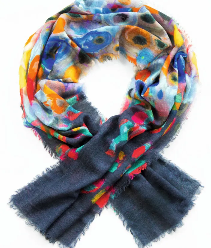 Der Schal »Nele« besticht durch sein fröhlich buntes Dekor, das an Blüten erinnert und jedem Outfit eine frische Note verleiht. Hergestellt aus 100 % hochwertiger Wolle, bietet er nicht nur ein angenehmes Tragegefühl, sondern auch vielseitige Kombinationsmöglichkeiten dank der harmonischen Farbvielfalt.