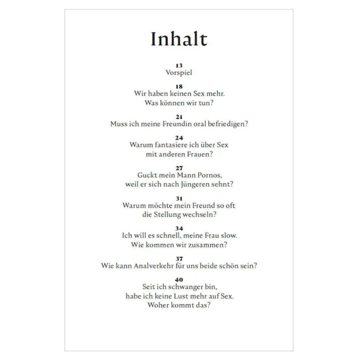 … vor allem, wenn es um Probleme im Bett geht. Plötzlich tauchen Fragen auf, die wir uns noch nicht mal trauen, mit der besten Freundin oder dem besten Freund zu besprechen: Muss ich jede Vorliebe meiner Partnerin erfüllen? Habe ich keinen Orgasmus, weil ich verliebt bin? Wieso bin ich beim Sex eigentlich überall, nur nicht bei meinem Freund? Ich finde meine Frau nicht mehr erotisch, was soll ich machen? Zerstört meine Eifersucht unsere Liebe? Kann man Polyamorie eigentlich üben?