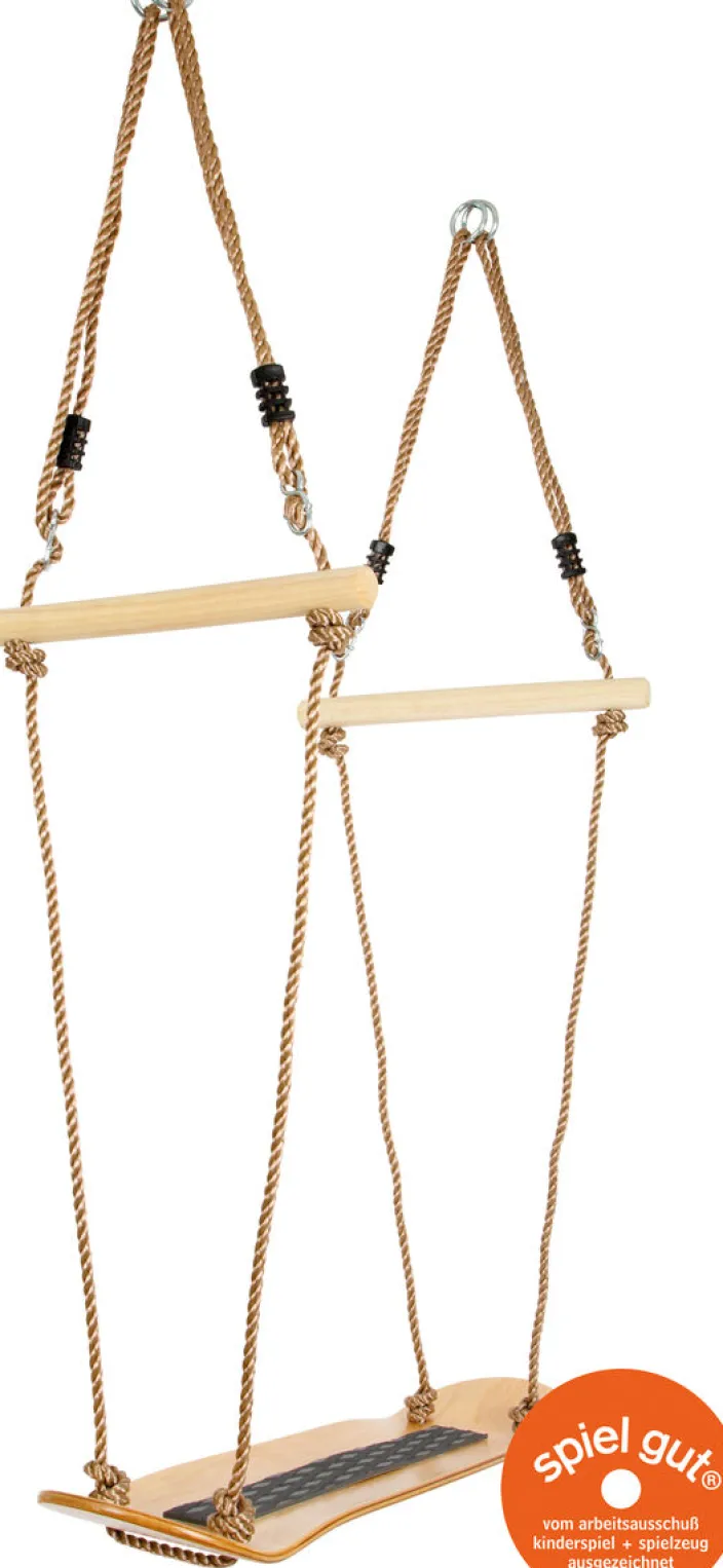 Für die nötige Sicherheit sorgen die verstellbaren Handgriffe und die optional verwendbare Anti-Rutsch-Matte. Die Länge der Seile ist verstellbar und die Schaukel ist mit jedem Schaukelgerüst, das über zwei Befestigungsvorrichtungen verfügt, kompatibel.