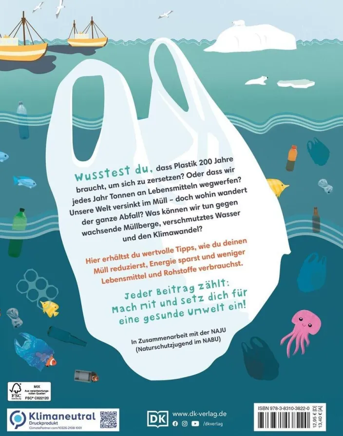Wie viele Jahre braucht ein Plastikstrohhalm, um zu verrotten? Woraus besteht unser Haushaltsmüll? Dieses Buch klärt auf über Themen wie Klimawandel, Naturschutz und erneuerbare Energien. Zahlen und Fakten – in leicht verständlichen Infografiken aufbereitet – sowie anschauliche Abbildungen führen Kinder an wichtige Umweltthemen heran und zeigen den jungen Naturschützern, wie sie Müll vermeiden können. Mit Vorwort von NAJU, der Naturschutzjugend des NABU!