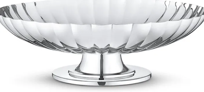 Die »Bernadotte« Sockelschale ist eine Fortsetzung der beliebten Formen des legendären Designers Sigvard Bernadotte. Inspiriert von Sigvard Bernadotte und entworfen vom Georg Jensen Design-Team vervollständigt diese Schale das Tischgeschirr der Bernadotte Kollektion durch die Vereinigung von Design-Elementen aus frühen Werken von Bernadotte in einem Stück. Die geschwungene Schale aus hochglanzpoliertem Edelstahl erinnert an die Designs aus der Bernadotte Kollektion und ruht auf einem Fuß, der einem Original-Leuchter nachempfunden ist.