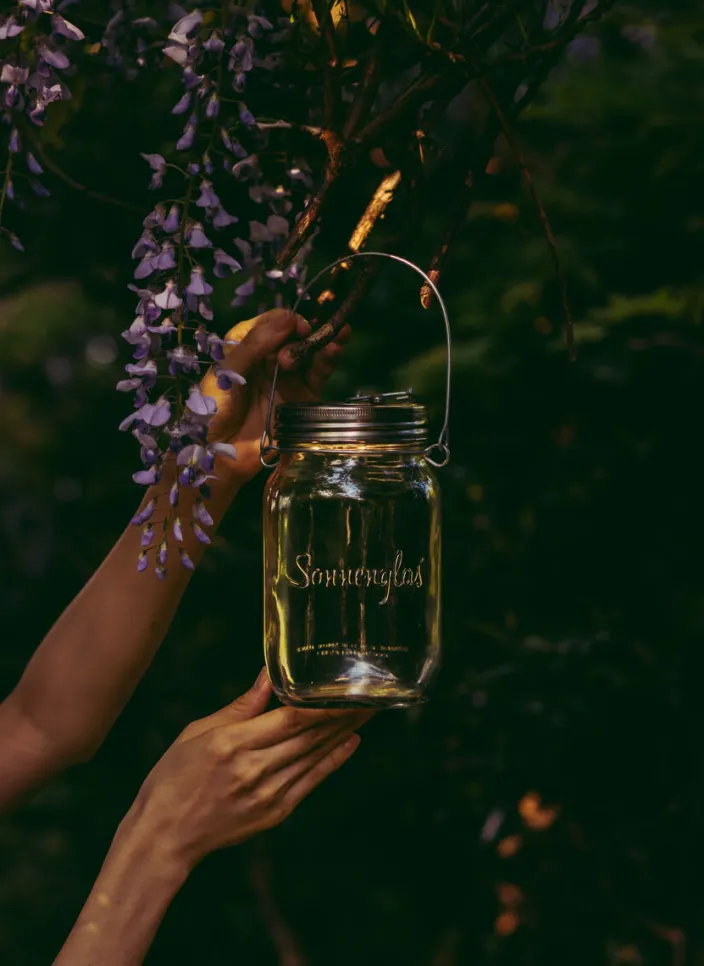 Die solarbetriebene, individualisierbare mobile Glaslaterne zur Beleuchtung im Innen- und Außenbereich ist nicht nur unglaublich praktisch für den Campingausflug ohne Stromnetz, auch als Dekoration im Garten macht sie etwas her. Nachhaltig und fair in Südafrika produziert, ist das Prinzip dieser Solarlampe simpel und geradezu genial: Das SONNENGLAS® speichert während des Tages Energie, die es nachts in Form von Licht wieder abgibt. Diese Methode der Lichterzeugung ist nachhaltig, stellt einen einfachen Weg dar, umweltbewusst zu leben, macht Spaß und sieht charmant aus.