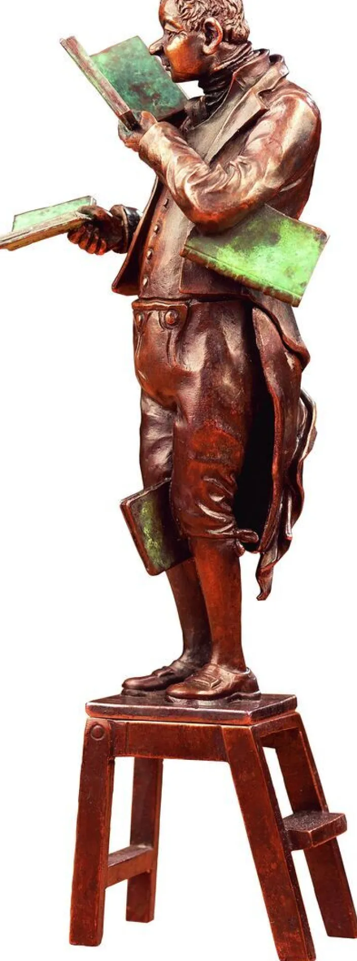 Das bekannte Motiv des Bibliothekars aus Carl Spitzwegs Gemälden. In luftiger Höhe steht er auf einem wackeligen Stuhl, vertieft in seine Lektüre. Ein tolles Geschenk für alle Literaturfreunde!