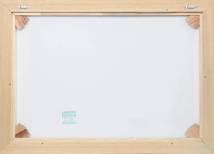 Jedes Exemplar »Leises Meeresrauchen« der Künstlerin Anja Struck aus Lüneburg ist einzigartig. Spaziergänger und Vogelschwarm werden von der Künstlerin nachträglich mit Ölfarbe eingefügt. Dieses serielle Unikat ist limitiert auf 75 Exemplare und wird per Hand nummeriert und signiert.