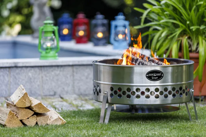Mit der »Tyropit« Edelstahl-Feuerschale holen Sie Ihre Lieblingsmenschen ans Lagerfeuer im Garten oder genießen die gemütliche Atmosphäre ganz für sich allein.