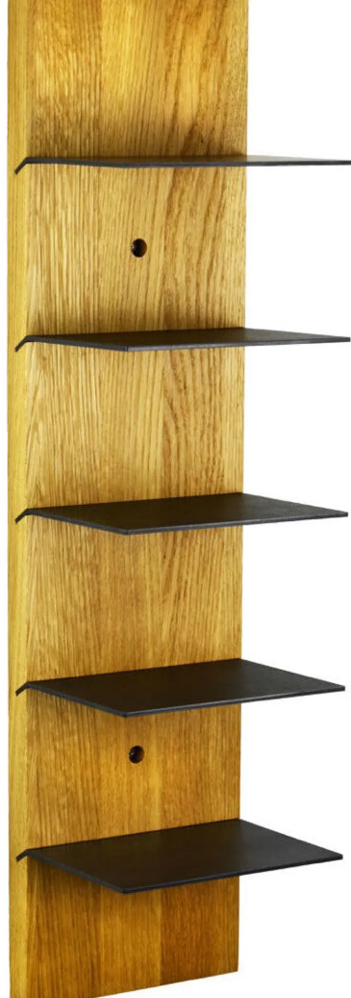 Das in Deutschland handgefertigte Wandregal »Scala« besticht durch seine Schlichtheit und Funktionalität. Die Einlegeböden sind aus geöltem Stahl und variabel einsetzbar: Sie können horizontal angebracht werden, dass Bücher und andere Accessoires optimal platziert werden, oder ebenfalls leicht schräg, sodass die Einlegeböden den optimalen Halt für Ihre Magazine oder Zeitschriften bieten.