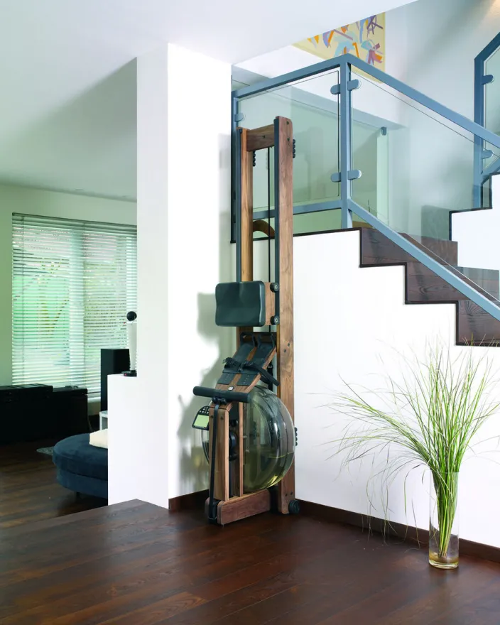Der WaterRower steht für einzigartige Qualität und realistisches Rudern auf dem Wasser. WaterRower Rudergeräte bieten schonendes und effizientes Ganzkörpertraining vom Anfänger bis zum Spitzensportler und beeindrucken durch ein herausragendes Design. Das Rudergerät lässt sich nach dem Training platzsparend verstauen: Mit einem einfachen Handgriff kann das Rudergerät hochkant an der Wand platziert werden, das Wasser bleibt dabei sicher im Tank.