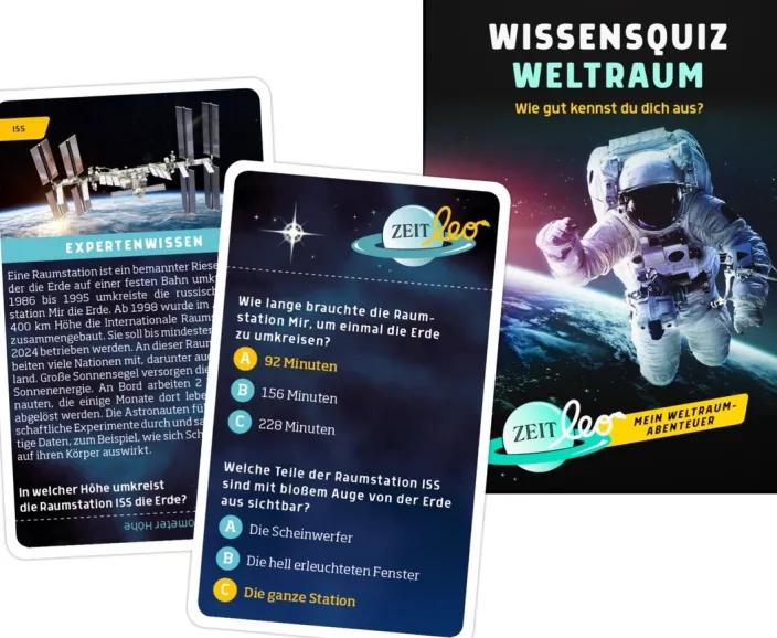 Das großformatige Wissensbuch »Der Weltraum« erklärt spannend und anschaulich, was Wissenschaftler über unser Sonnensystem, die Milchstraße oder weit entfernte Galaxien wissen: Gibt es Außerirdische? Was ist dunkle Materie? Wie entstehen Sterne und wie sterben sie? Mit dem Forscherbuch »Entdecke den Nachthimmel« und der dazugehörigen drehbaren, nachtleuchtenden Sternkarte werden Ihre Kinder selber aktiv und können die Sternbilder am Nachthimmel entdecken. Den Großen Wagen kennen sie vielleicht schon, aber wie sieht zum Beispiel der Schwan aus? Und mit dem Wissensquiz für die ganze Familie können große und kleine Neugierige in einem spannenden Duell testen, wie gut sie sich in der Welt der Astronomie bereits auskennen.